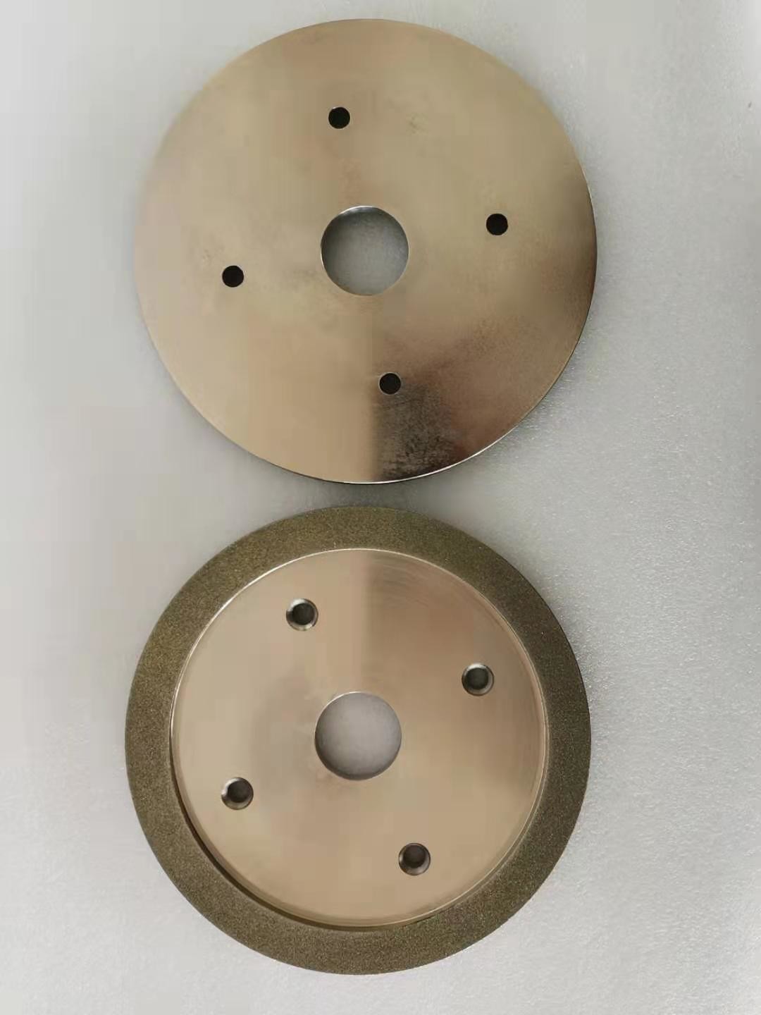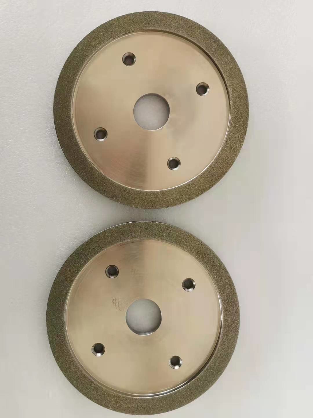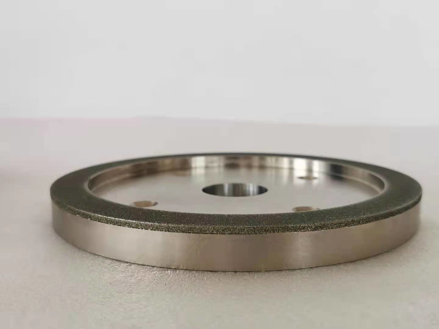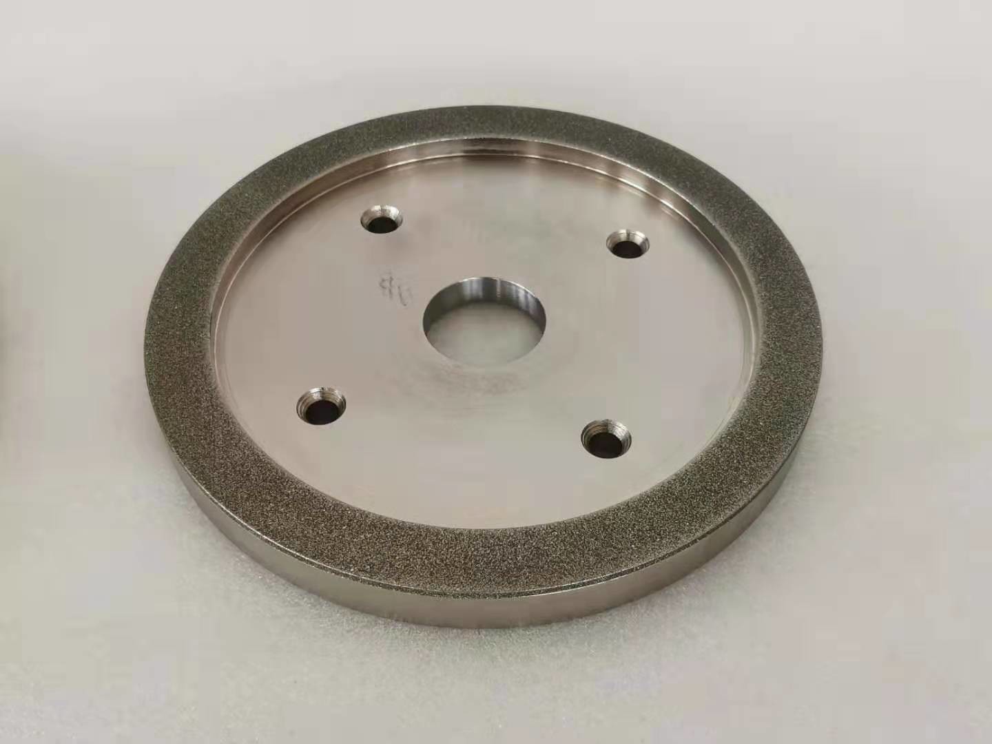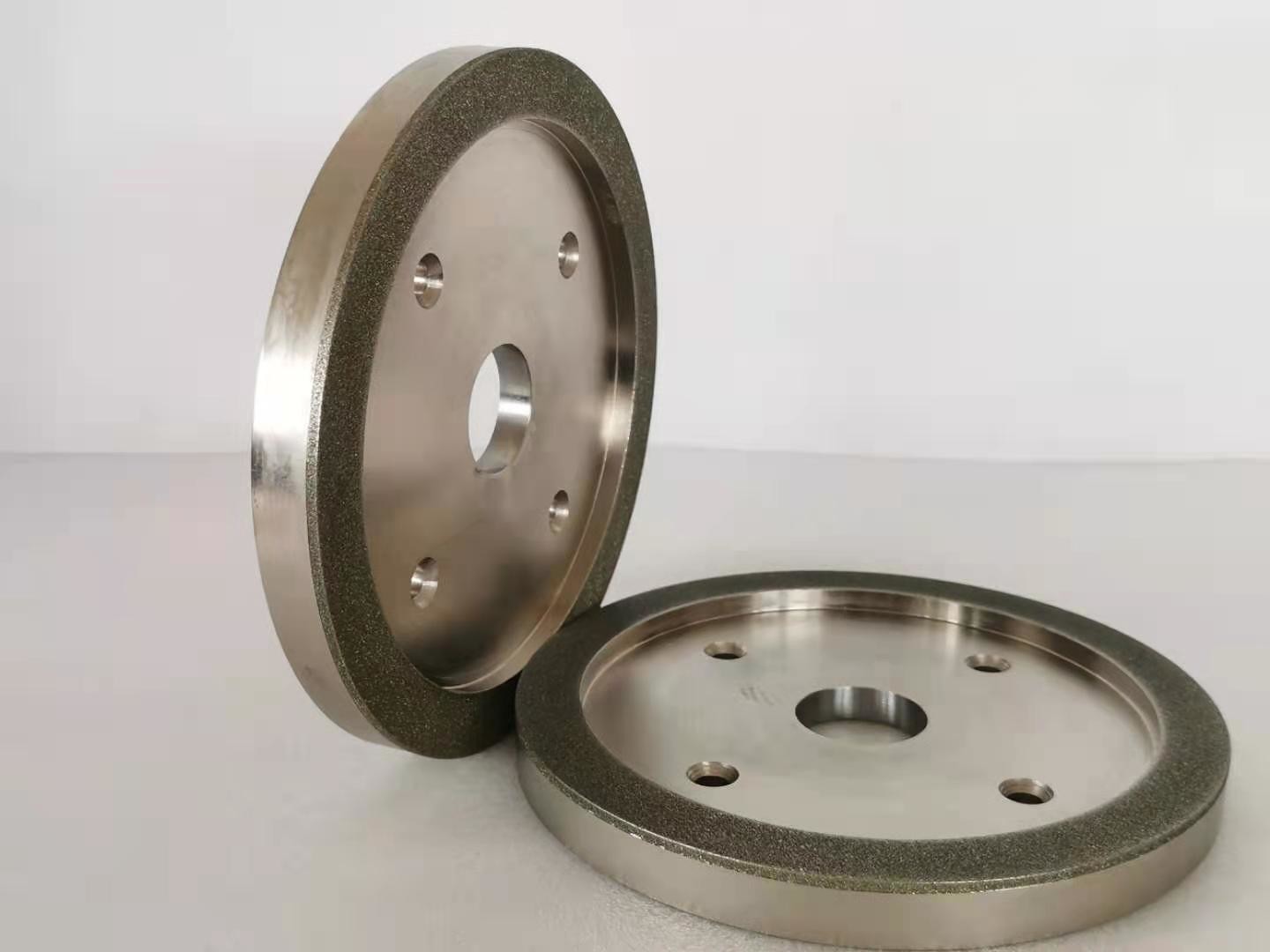 Para las muelas abrasivas del diamante, la capa de trabajo de la muela abrasiva contiene granos abrasivos del diamante, y los abrasivos del diamante son enlazados al substrato por un enlace del metal. Primero, el grueso del enlace del metal depositado es el 20% de la altura de los granos abrasivos del diamante (el enarenar), y entonces el enlace del metal se utiliza para enlazar (espesar) los granos abrasivos del diamante, y el grueso es cerca de 2/3 de la altura de los granos abrasivos. Incluyendo el diamante que viste las ruedas, las ruedas de diamante para moler o cortar.