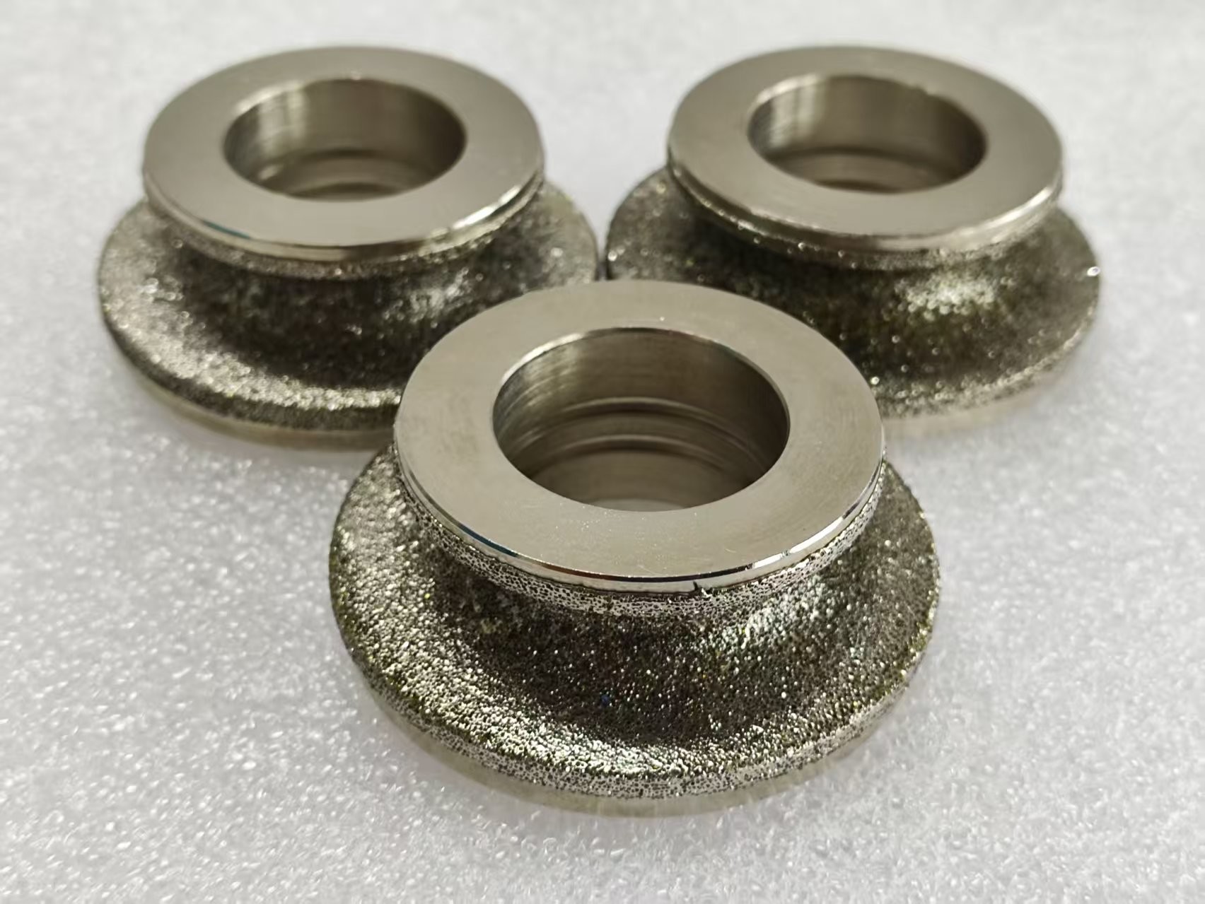 Capa de electroplataje:Los granos abrasivos de diamante se fijan firmemente en la superficie de la matriz a través de procesos de galvanizado, como el revestimiento con níquel.Las partículas de diamante se distribuyen uniformemente para formar una capa de corte de alta dureza.