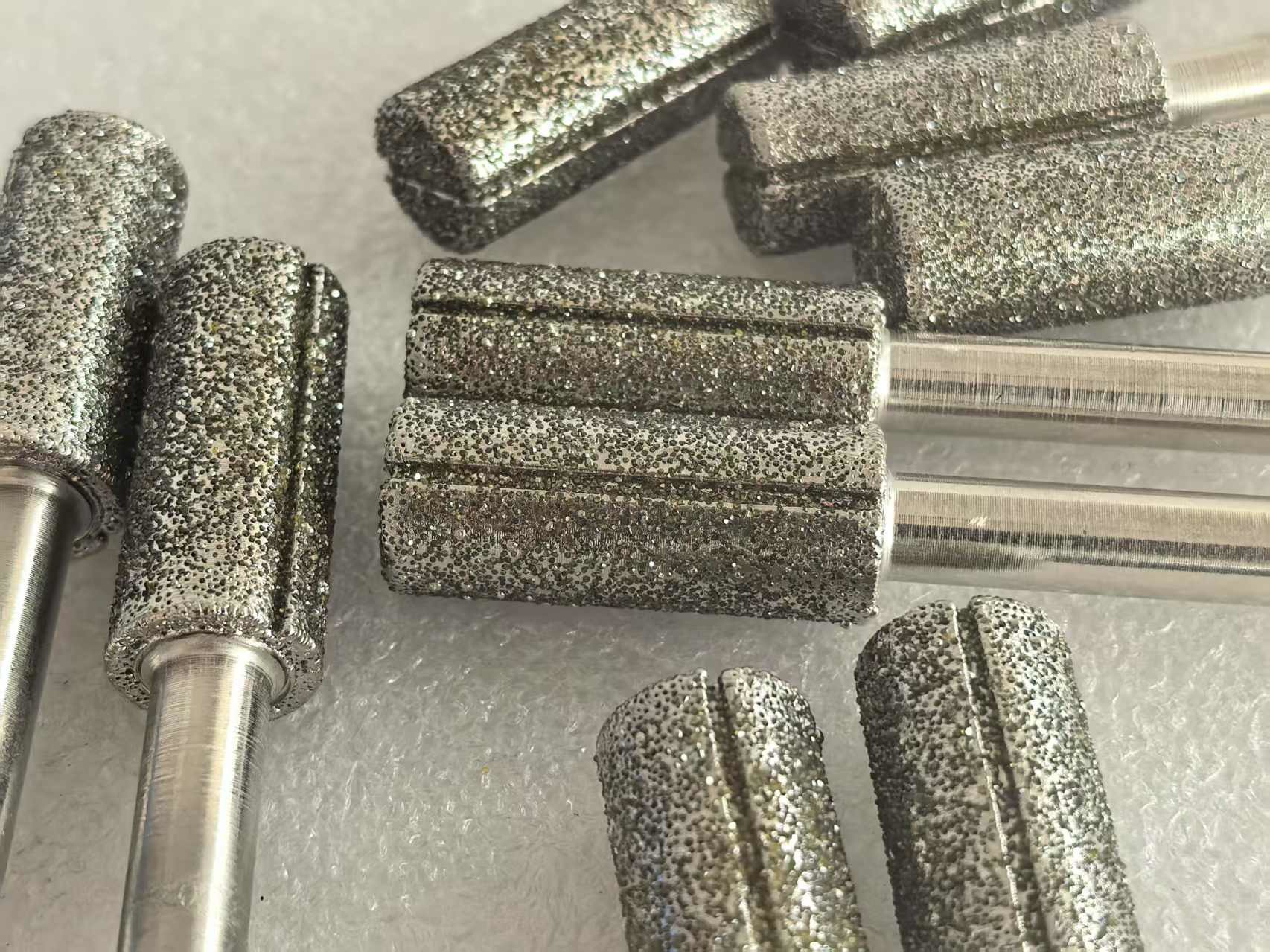Los puntos montados con diamante, se pueden utilizar para pulir y esmerilar. Puede pulir cualquier superficie rugosa de forma rápida y precisa. Se utiliza principalmente como muelas para orificios internos, esmerilado interno y pulido.